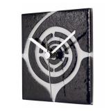 Square Glass Wall Clock with Swirl. Color: Black. Glass with transparent swirl design. Easy to hang on wall. Powered by accurate and reliable German-made quartz movement. Overall 5.3'' W x 5.3'' H x 2'' D. NEW IN FACTORY CARTON, PREVIEW FOR COMPLETE SATISFACTION. RETAIL PRICE $53.99 **(86)** |