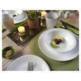 Corelle Embossed Bella Faenza 16-pc Dinnerware Set. Service For: 4. Set Includes: 4 Dinner plates, 4 lunch plates, 4 soup bowls, 4 mugs. Material: Glass; Porcelain. Color: White. Dishwasher Safe: Yes. Microwave Safe: Yes. Dinner 10.25'' W x 10.25'' D. Salad Plate 8.5'' D. Bowl 1.75'' H x 7.25'' W x 7.25'' D. NEW IN FACTORY CARTON, PREVIEW FOR COMPLETE SATISFACTION. RETAIL PRICE $74.99 **(88)** |
