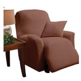 Stretch Microfleece Box Cushion Recliner Slipcover. Upholstery: Brown. Accommodates lift recliner: Yes. Can accommodate a rocker recliner. Pet resistant: Yes. Overall 44'' H x 88'' W x 30'' D. Largest Compatible Arm 21'' H. Seat Height - Top to Bottom 18 ''. NEW IN FACTORY CARTON, PREVIEW FOR COMPLETE SATISFACTION. RETAIL PRICE $69.99 **(90)** |