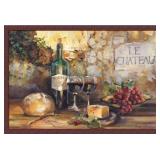 'Le Chateau Wines/Cheese/Grapes/Bread/Country Tuscan' by Marilyn Hageman Framed Painting Print. Framed in Sturdy Medium Wood Tone 2" Wide Solid Wood Composite Moulding. Framed using Plexi Glass for Protection. Frame finish: Dark Brown. Overall 28'' H x 40'' W x 1.5'' D. Individual Piece 24'' H x 36'' W. Finished Frame Size: 28" H x 40" W. NEW IN FACTORY CARTON, PREVIEW FOR COMPLETE SATISFACTION. RETAIL PRICE $300.00 **(96)** |