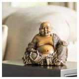 Sitting Laughing Buddha Figurine. Cast heavy resin construction. Faux wood carved finish. Overall 6'' H x 6'' W x 5'' D. Finish: Brown and gold. NEW IN FACTORY CARTON, PREVIEW FOR COMPLETE SATISFACTION. RETAIL PRICE $45.50 **(97)** |