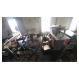 Tools (wrenches, sockets) collectibles; household items; curio cabinet; table chairs; Craftsman riding mower.