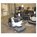 WAREHOUSE EQUIPMENT: "BRAND NEW" Nematic TTB2120 Floor Scrubber/Sweeper, (3)Crown Electric Pallet Jacks, Forklift Cage, Pallet Jacks, (8)Rolling 8' & 12' Stock Ladders