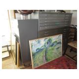Interesting sale, Art & sculptures by Wendell Heers, Nice & others Brueton cocktail server Antique tools 2 mid century sofas, a little cat damage Tons of books More pictures and details closer to the sale |