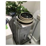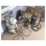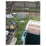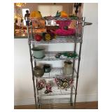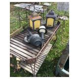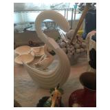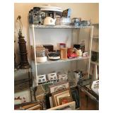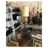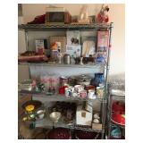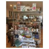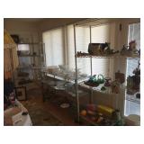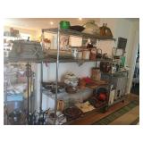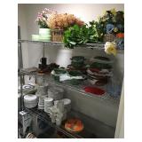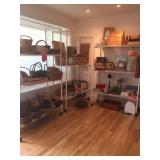 There are also barbecue grills, lawn decor, plant holders, lots of beautiful decorative baskets, designer fabric and wallpaper, lamps, dishes, beautiful bowls, silk flowers, large bird cages, white shelving, books, and linens.