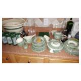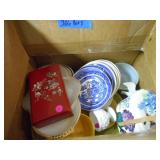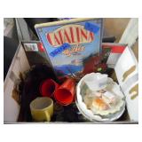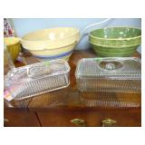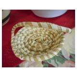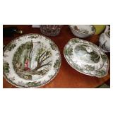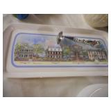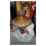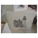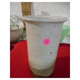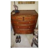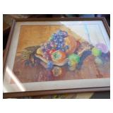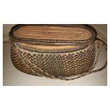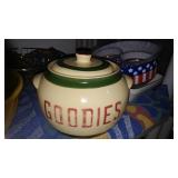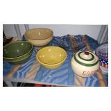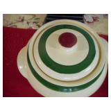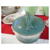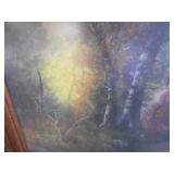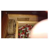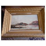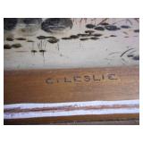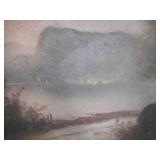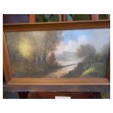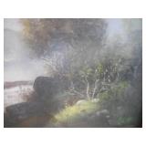 PHILLIPS, Circa 1920's Looks like Hudson River with trees around it PASTEL PAINTING signed Phillips,Vintage Watt "Goodies" Cookie Jar,several vintage longaberger baskets, MAITLAND SMITH GILT LEATHER WRAPPED 5 DRAWER CHEST/dresser,