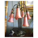 a pair of Dale Tiffany Inc. Antiques Roadshow Signature Art Deco Lady Clock Lamp,