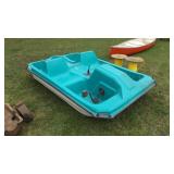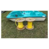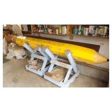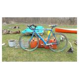 several other bicycles, Water Wonderland fiberglass canoe, steel scaffolding,