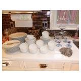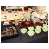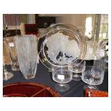 GLASS & POTTERY · Signed Art Glass · Art Pottery · Crystal by Steuben, Lalique, Baccarat, Waterford, Hoya, Rosenthal, etc. · MacKenzie Childs · Rosenthal White China Service · Etched Crystal Charger signed by Luciana Roselli · Russel Wright Vintage Polka Dot Glassware · Noritake “Heritage” China Service · Bjorn Wiinblad for Rosenthal Signed/Decorated Platter · Limited Edition Limoges “Unicorn in the ” & King Tutankhamun Plate Collections · Weller Pottery