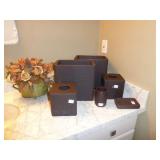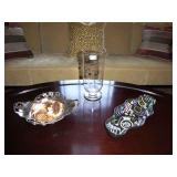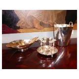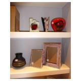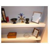 ANTIQUES, DECORATIVE ACCESSORIES & COLLECTIONS · Barbara Barry Solid Crystal Table Lamps · Baker Round Mirror · Crystal Block Table Lamps by Richard Ross · Antique Iron Andirons with Custom Glass Fire Screen · Tiffany-Style Table Lamp · Mission-Style Stained Glass Lamp · Wedgwood Black Basalt Collection · Richard Meier Glossy Stainless Flatware by Reed & Barton - Swid Powell · Paperweight Collection · Bakelite · German Deco Porcelain Biscuit Boxes · Collection of Artist-made Wood Pieces – Boxes, Vases, Bowls, etc · Alessi · Georg Jensen Stainless Canape Set · Vintage Art Deco-style Fostoria Glass, designed by Georges Sakier · Amy Sabrina Signed Teapot · Karren Pavey Signed Teapot · Tiffany & Co. Ceramic Candlesticks, Designed by Elsa Peretti · Chinese Hand-painted Porcelain · Southwest-style Iron Figural Sculpture · Limited Edition Mid-Century Iron/Copper Candlesticks,Signed and Numbered · Judaica, including Sterling Menorah signed Bier · Russian Brass Samovar · Hans Grag Signed Silver-plated Candelabra · Asian Lacquerware · Paolo Rizzatto Mid-Century White Planter from Design Within Reach · Bronze Recast Sculpture of Man · Collection of Antique Beaded Purses & Compacts · Artist-made Leather Masks · Brennan Copper