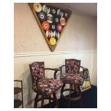 SIX PIECE POKER GAME TABLE W TWO MATCHING POOL ROOM SWIVEL CHAIRS