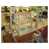 Brookstone Sharper Image full body massage chair; Whirlpool side by side frig; Marantz stereo system; Austin air purifier; Dirt Devil sweeper; hide a bed sofas; recliners; living room tables & lamps; walnut dinette table chair set; swivel barstools; wrought iron rooster hanging light; Mid Century Modern Teak queen bed set; twin beds; bookcases; lg. beveled glass mirrors; patio area rugs; Nova Studios dinnerware; Towle Supreme Stainless bamboo flatware set;