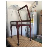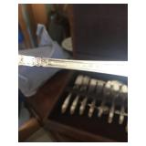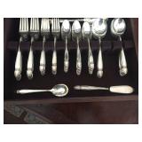 Included: · Collectible dolls · Ladies purses · Pictures · Lamp stands · Burled wood bureau · Antique curved leather-topped desk · Two portable radiator-style electric heaters · Kellogg’s Corn Flakes Racing Terry Labonte memorabilia · Dining table with four chairs (set) · Twelve-piece place setting Holmes & Edwards Inlaid Danish Princess · And more!