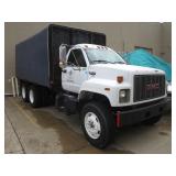 STAKE TRUCK 1995 GMC TOPKICK C7000 17' TANDEM AXLE STAKE TRUCK W/ SOFT SIDE SLIDING BOX SYSTEM & CAT DIESEL ENGINE, V/N 1GDT7H4JXSJ522010, 316,059 MILES