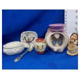 1 Lenox Bud Vase 9" 2 Vintage Chatillon Fruit & Vegetable Scale Capacity 20 LBS x 1 Oz Typr 720 3 Wooden Shoe Mold 24X 4 Cookoo Clock German 5 Coleman Gas Lantern 14" 6 3 Small Glass Oil Lamps Tallest 7" 7 Radioshack Hand Scanner 8 Cobra Pocket Knife 4" Blade 9 Architect Draft Kit Staedtler Mars 10 Boyscout utensils 11 4" crock Three Rivers pottery 12 WE a wolf original The Wolf Sculpture 3" 13 Hall creamer 14 Chatillon 100 scale 15 Weather station 16 11" saw blade 17 1993 Sylvac England pitcher/creamer 3" 18 16" saw blade 19 Vermont castings trivet 20 1Vista model 915 Jeson Empire bionoculars 21 1" vintage folding saw 22 handheld sythe 23 leather punch 24 Craftsman vise with weights 25 Enamel funnel 26 Craftsman 15.6 industial 3/8" drill/driver 27 Box of price guides 28 Box of multi purpose adhesive, fogger, spray paint 29 Box nails, screws, etc 30 Pots, pans 31 Ewave microwave 21.5x15x12 32 Older 3.5 qt crock pot 33 Wall mount lights 34 Metal wall hanging baskets 35 Teleflora candlestickholders 8" 36 stemware 37 Glasses, juice, etc 38 Stainless tray with coasters 39 Stackable Christmas tree 5" 40 Stackable Santa 6" 41 Stackable Santa 6" 42 Santa candlestick 9" 43 W. Germany mini candleholders 1" 44 Taper candle holder 45 hand pted spoon rest 46 stemware 47 Small box of Christmas figures 48 Small box of Christmas figures 49 Collander and teapot 50 Gibson dinner set 3 plates, 3 bowls, 4 small plates, 1 coffee cup 51 Sheets Emma collection 2 Queen, 1 Twin 52 Sealy elec. Blanket plugs only 53 small box flashlights 54 7" desk fan 55 7" desk fan 56 Samsung DVD/VHS player 57 7" desk fan 58 Small kitchen appliances, toaster, iron, toaster oven 59 2 The Practical Doctor books 60 Stackable mid century teapot 61 Disney hand held game 62 Madonna with child and 2 angels by Pesellino C. 1422.57 6.5 & 7.5" 63 Slate Welcome Friends Hand painted 64 K'Nex screaming Serpent motorized roller coaster 65 Box of cordless phone 66 Decoy like ducks, decorative plates 67 4 pyrex nesting bowls 68 small box of knic knacs 69 glassware 70 drinking and juice glasses 71 box of playing cards 72 Wine accessories 73 box tools, screwdrivers, hammer, pliers 74 ceiling light 75 signed decorative plate with holder 76 small nuts and bolts holder 77 box knic knacs 78 Wedges 79 Apron Christmas 80 7" planter West Coast pottery 81 coffee mugs 82 Wilson practice putter, Birdie ball, golf balls 83 Assortment of decorative animals 84 2 nut bolt bins 85 wrought iron candleholders 86 wooden items, baskets, tissue holder 87 wooden frames and picture holders 88 3 planters, 1 rabbit 89 corning baking dishes, etc 90 Christmas cups, saucers, creamers 91 Corningware dinner set, 92 corningware casserrole dishes 93 1 corningware casserrole dish 94 box of cookbooks 95 glassware, salt and pepper, 3 bears plate 96 RCA video camera recorder with case 97 small box of tools, screwdrivers, hammer, mallet 98 Early green 7 up bottle 99 hand painted pitcher, Church scene 100 Pistol holder with shells 101 kitchen items, knives, tongs, can opener, erc 102 ktichen items, dish towels, oven mitts 103 motivational tapes, books, Anthony Robbins 104 Tydol flying stamp album 105 US postal service souv stamps 106 Ivory stamp club with Captain Tim 107 Imperial stamp album 108 postcards stamps 109 Ambassador album stamps of the World with a few stamps 110 Wooden shelf with small pegs 36"x10" 111 2 Tiemx watches 112 Colored sotne and polished shell necklaces 113 4 pair of earrings 114 Amway necklace, earrings, pair of LC earrings 115 Box of earrings and pins 116 Box mixed jewelry some 14k, 10k silver 117 stemware, wine glasses 118 14K Clasp Necklace 14K GF Necklace 2 Pair GF Ear Rings 14K Pair Ear Rings & 1 Pair Hand WR Ear Rings 119 14K Cameo Ear Rings 120 10K Blue Ehinestone Ear Ring Ring & Necklace Set Ring Approx Size 8 121 14K Flower Ear Ring & Necklace Set 122 Asst Stemware Glasses 123 Asst Kitchen Utensils 124 Glass Punch Bowl w/ 11 Cups 7.5" Bowl 125 2 Blue Glass & 2 Clear Glass Anchor Hocking Bakeware 126 2 Glass Handled Baskets, Plates & Platters 127 2 Tuxton Bowls 3 Correlle Bowls & 1 Sakura 128 Fishy Dishy Chip & Dip Glass Tray 129 Vintage Level 4FT 130 Asst Dream Catchers Asst Sizes 131 Hand Painted Bowl Signed Hogan 6" 132 Box of Asst Pots & Pans 133 Box of Asst Bakeware 134 Box of Asst Sea Sponges 135 Box of Asst Place Mats & Table Runners 136 Box of Asst Candles 137 Life Ladder Instant Fire Escape in Box 138 Box of Asst Cleaners Insecticides Zip Ties Etc 139 Box of Rope Staple Gun Wire Rain Coat Etc 140 Box of Collector's Guides 141 Box of Extention Cords Timers Alarm Clock 142 Box of Asst Games 143 Box of Asst Cleaning Items Lotions Perfumes Etc 144 Box of Asst Items 145 Box of New Wood Crafts 146 Box of Asst Christmas Decorations 147 Box of Plasticware 148 Box of Asst Purses 149 Box of Garden Items & Decorations 150 Box of 4 Jugs Antifeeze 151 Box of Asst Items Rust-Oleum Garbage Bags First Aid Kit Etc 152 Box of Asst King & Queen Size Sheets 153 Box of Asst Twin Sheets 154 Box of Asst Items Static Guard Rust-Oleum Etc 155 Box of Car & Garage Items 156 2 Coffee Makers 1 Cuisinart 1 Better Chef 157 Box of Asst Bath Towels 158 Box of Asst Kitchen Utensils 159 Box of Asst Pots & Pans 160 Box of Asst Bed Linens Comforters Etc 161 Box of Asst Table Cloths & Oven Mitts 162 Box of Asst Blankets 163 Box of Asst Bed Pillows 164 Winchester Super Target Trap Loads 25 12 GA 2 3/4 IN 165 38 Special 141 Gr Bullet Unique Powder 6.0 Shoot in 357 166 141 Gr Bullet 6.0 Gr Pwder Unique Shoot in 357 167 Powder IMR 30-31 28 Grain Bullet 150 Grain 168 Remington 38 Special Police Service 158 Grain Lead Bullet Not Full Box 169 Bullet Gr 141 Unique Powder 3.5 Gr 170 Shot 38 Special 171 Gr Bullet 141 Uniqie Powder 5 Gr 172 41 Grain Powder 150 Grain Bullet 173 150 Gr Bullet 3.5 Gr Powder 174 41 Grain Powder 150 Grain Bullet 175 148 Gr Bullet 7.4 Powder 176 2 Vintage Christmas Mugs 3" 177 2 Stangl Pottery Pitchers Tallest 4.5" 178 Box of Asst Mugs 179 Box of Glasses & Kitch