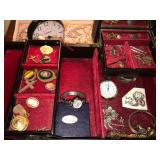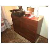 HOUSEHOLD: Barwick Howard Miller co. 1973 Grandfather Clock- New Home Memory Craft 8000 Sewing Machine- Imagine Serger- Mannequin- Material- Sewing Thread & notions- Rope Hammock- Dark wood Side Hutch- Dulcimer- Jewelry Box- Rocking Chair- Round Wood Dining Table- w/Chairs- Ashford Spinning Wheel- 2 Wood Bar Stools- Corner Curio Cabinet- 2 Door Filing Cabinet- Paper Shredder- Wood Side Tables- Sitting Chair- Vintage Telephone Table- Wood Coffee Table- Floral Couch- Travel Books- 8 mm Projector- Large mirror- Blue Glass Doves- VCR/DVD Player- Stereo- Metal Lamps- Wood Cabinet- Parsons Bench- Wooden King Bed- Large Wood chest- Magnavox Radio/Cd Player- Vintage Purses & Hats- 2 Twin Beds- Health o’meter Weight Scale- Costume Jewelry- Lucite Lamps- Pitcher & Bowl- Schwinn Biodyne Exercise Bike- Pool Table- Ping Pong Table- Wood Computer Desk- Vintage Games- Fold Up Tables- Sewing Board- Large Dining Table w/Chair- Chest of Drawers- Totes of thread-