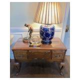 Val St. Lambert Crystal Gavel (Hammer/Paperweight) Large Owl on Books Facing Right Blue, Herend porcelain, from Hungary, handmade and hand-painted with 24k gold accents. 5"w x 7"d x 11 3⁄4"h Ways & Means Porcelein pitcher, marked 7/24/1989