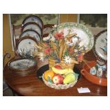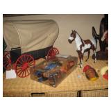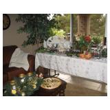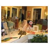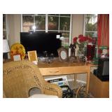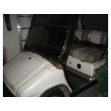 Golf cart; leather sofa and matching love seat; Dark dining room table and six chairs; side hutch; blonde drop leaf desk with matching file cabinets and book cases; King mattress set; Rattan bedroom furniture; Fire-pit patio table set with four chairs; Native American fetish, pottery and jewelry; Home theater stereo set; wood carving figurines; Waterford; Trundle bed; bike; golf clubs; all wood dinette set with four chairs; patio lounge chairs; vintage toy set; LLadro figurines; belt buckles; pewter miniatures; BBQ; Christmas tree; much home decor |