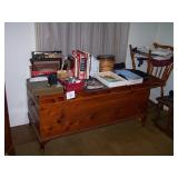 Contents to include: Contents to include: sofa, chairs, tables, lamps, glassware, household misc, drop leaf table/chairs, buffer, cedar chest, books, fridge, washer/dryer, mirrors, chests, dressers, stereo, toys, games, area rugs, stair lift, kitchen table/chairs, desks, rocking chairs, tin cabinets, electric mower, weed wacker, and much more! |