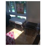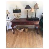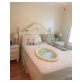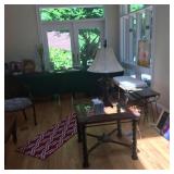LOVELY FURNISHINGS TO INCLUDE: Ornately carved coffee tables, Bombe chest, five drawer ball & claw chest, library tables and occasional tables adorn the home. Wood framed w rattan contemporary arm chair. Five piece “shabby sheik” queen bedroom set. Seven piece king four poster rice bedroom set by Kimball. Three piece scrolled metal w upholstery bar stools. Multi-drawer jewelry chest. Pair of Navy Velvet wing back chairs w ottoman. Cherry desk/bookcase office unit. MID CENTURY MODERN FIVE DRAWER CHEST GREAT WORK OUT EQUIPMENT to include: “LIVESTRONG” Indoor cycle. “SOLE” F80 INCLINER, ‘WEIDER 200” Chin up – pull up” Machine. OTHER COLLECTIBLES TO INCLUDE: Longaberger baskets. NEW IN PACKAGE – Cases of house wares, light bulbs, arts & crafts Stock up at great prices. Loads of new Office Supplies KITCHENWARE TO INCLUDE: Waterless cook ware, LENOX CHINA “HAYWORTH” 5 piece service for 12. Gorham stainless steel flatware. ANTIQUE CAST IRON POTS. Al clad pots, pans, cookware GELATO MACHINE by Lello FLAT SCREEN TVS including 40” Toshiba wide screen TV.21” Toshiba flat screen TV. NATIVE AMERICAN 9’X 12’ rug, beautiful oriental rugs adorn the home. COACH Handbags, other designer bags, loads of women’s totes and straw hats. Men’s jackets size medium W ii Game Controller & games, CDs, DVDs, fabulous cook books, Collectible Barbie Dolls. Bose VCS – 10