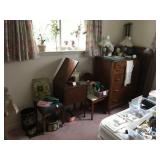 Well-Kept Home with Quality Furnishings, Antiques, Household & Much More! Vintage Flex Steel Sofa, Recliner, Misc. Side Chairs, 32" Flat Screen TV, Lamps, Misc. Sm. Tables & Stands, Cherry Drop Front Desk with Ball & Claw Feet, Wall Art, Prints, Paintings, Frames, Books, Bookcases, Yearbooks, Sm. Empire Stand, Floor Lamps, Steamer Trunks, Clocks, Quilts, Walnut Dining Table with 8 Chairs, China Cabinet, Buffet, Lots of Glass of all Types, Pottery, Porcelain, Sets of China, Silver-Plated Flatware, Full Kitchen Assortment Including Cookware, Bakeware, Dinnerware, Sm. Appliances, Corningware, Pyrex, Vintage Items, Sewing Machine, Sewing Items, Craft Items, Several Beds, Chests, Dressers, Night Stands, Bedding, Old Dolls & Toys, Games, Records, Record Player, Misc. Electronics, Vintage Christmas Decorations, Lots of Jewelry, Watches, Coins, Pocket Knives, Hand Tools, Hardware, Ladders, Garden Tools, Push Mower, Snowblower, Lots of Unlisted Items!