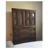 This online Auction features a Kitchen Table and chairs, Watercolor print By Vernon, Art Deco style cut mat print, framed Thai painted fabric, and framed poster of a temple, Tall Asian style Vases with faux flower arrangement, Crestwood "Empress" China set, matching upholstered dining chairs, matching captains chair, King Bed Frame, Technics Stereo And Speaker, Assortment of decor items that include a tall red vase with faux flowers, serving dishes, ashtray, large glass bowl glass grapes, Blue Statesville Ross arm chair with wood details, HealthRider Treadmill 36X72X49 Model S400, Vision Fitness stationary bike, and much more!