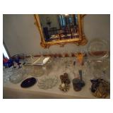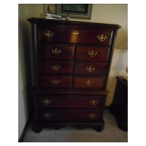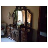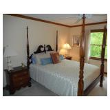Bedroom furniture including queen size 4-poster bed, dresser with tri-fold mirror, chest of drawers, night stands