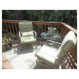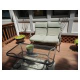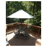 Patio furniture including round table with chairs & umbrella, glass tables, chairs, loveseat