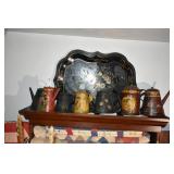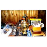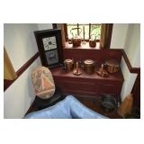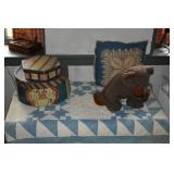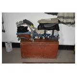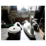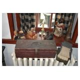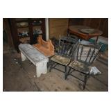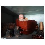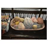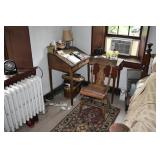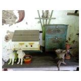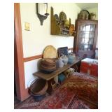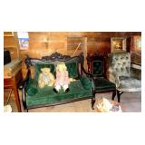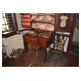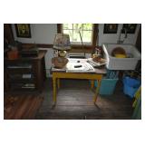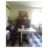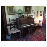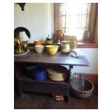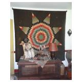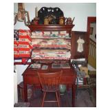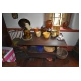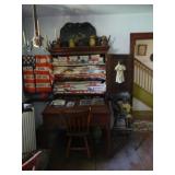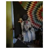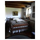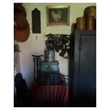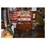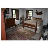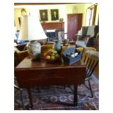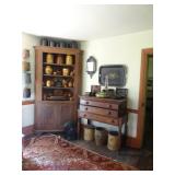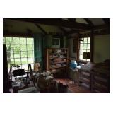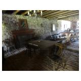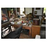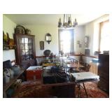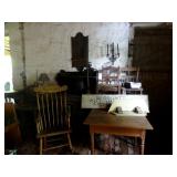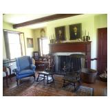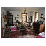 FURNITURE & ANTIQUES: Plank Bottom Settee, 19th Century Cast Iron Cook Stove, Figural Painted Fire Board, Advertising Tins and boxes, Ladderback Chairs and Rockers, 6ft. Mustard Painted Sawbuck Table, Wicker Lounge and Chairs, Christmas Fencing, Wooden Birdcage, Federal Fireplace, Set of Painted Plank Chairs, Large Selection of Shutters, dozens of Antique Frames and Mirror, Arts & Crafts Bookcase, Seven Drawer Painted Apothecary High chest, Pair of Enameled Claw Ft. Bath Tubs, Painted Jelly Cupboard, 100 Ft. of Slatted Garden Fencing, Windsor Chairs, Kugels, Decoys, Cast Iron cooking Items, Large Cast Dinner Bell, Dozens of Crocks, lots of Kitchen ware, Toleware Lamps, etc, Painted Box, Dozens of Burl Bows, some painted, Pierced Tin Lamps, Twenty Seven Drawer Painted Apothecary, Copper, Early Chicken Painting, and other Primitive painting, Painted Cans with Advertising, Twelve Lite Two Piece corner cupboard, Small Size set of butterfly Windsor Chairs, Walnut Chest Three over 4, Dozens of Pewter Pieces, Redware, Red Painted 48” Tilt Top Table, Early Fruit under dome, Seth Thomas Schoolhouse Clock, Set of Graduated Shaker Painted boxes all colors, Artist Designed Bowls, Boxes, Bucket Benches, Open Two Pieced Cupboard Stacked with Painted Slipware by Shooner, Some very Rare Pieces, Mill Desk, filled with Quilts, Incredible Black Rag Dolls by Jackie, Wooden Artist Dolls, Bisque Dolls with Cradles’, and Shoes, Painted Dower Chest, Painted Game Board, Blue painted Butter Churn, Copper Apple Butter Kettle, Walnut Medicine Chest, Leaded Glass Tiffany Style Lamp with Pottery Base, Bennington Pottery, Tilt-Top Tables, other early tables, Pair Silk Tapestry Wing Back Chairs, Painted Plank Seat Rocker, Walnut Tambour Desk, Mohair Colonial Sofa, Stately Portraits, Two Piece Blind Door Dutch Cupboard, Early Rag Carpets, Many Oriental throw rugs , Cherry four post Tester Bed, Mahogany Centennial chest , Rope and Trundle Bed, Milk cupboard, Punch Tin Pie safe, Oriental rugs in every room, Sterling brush Set, Mahogany Centennial Chest on Chest, Pictorial Rag Carpet. This home is extraordinarily Well Appointed, with many of Jackies treasures and creations. Well worth a Saturday Spring On Site Auction. Ironstone, Materials, Rakes, Lanterns, Wrought Iron chandeliers, Spinning Wheel, Figural Christmas Balls, Blue Decorated Crocks, 1837 Coverlet, Clocks, Teddy Bears. Tall Case Clock, This is a partial listing, there will be hundreds of surprises. Jackie is represented in Early American Home’s Directory for American craftsmanship. She is one of the best in the country!