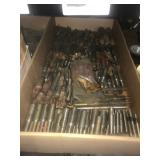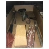 Butcher Block Top Work Table; Vintage Metal & Wood Filing Cabinets; Miniature Drawer Cabinets; Various 1964 School Kitchen/Shop Cabinets; Dressers w/ Carving; Commodes; Straight Chairs; End Tables; Cabinet Sewing Machine; Grandfather Clock; Wedgewood; Crocks; Copper Pcs.; Candlesticks; Ruby Red Glass; Pottery; Silverware; Figurines; Vesperglas Original Art; Holiday Décor; Crocks & Crock Jugs; Cast Tea Kettle; Leaded Glass Window; Antique Mirrors; Lantern; Vintage Light Fixtures & Hardware; Valves; Hydrants; Handles; Door Knobs & Hardware; Barn Siding; Vintage & Antique Doors; Rough Sawn Lumber; Enamel Barn Light; Sleigh Bells; Tool Chests; Machine Oilers; Calipers; Micrometers; Kennedy & Other Machinist’s Chests; Tape Measures; Levels; Wrenches; Drill Bits; Diameter & Thickness Gauges; Jewelers Lathe; Swaging Tools; Feeler Gauges; Squares; Rulers; Depth Gauges; Telescoping Gauges; Hole Gauges; Brace & Bits Sets; Hand Presses; Thread Measuring Wires; Esterline Angus Chart Recorder; Wooden Block And Tackles; Pulleys; Corn Jobber; Wooden Duck Decoys; Compound Bow; French Horn; Bugles; Violin; Records; Sheet Music; Vintage Toys; Boy Scout Items inc. Patches, Medals, Books, Clothing, Bronze Statue; Vintage Baseball Patches; Books; Vintage Schwinn Bikes;