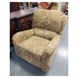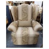 1 - GORGEOUS HAVERTY`S OVERSIZED CHAIR WOOD BASE W UPHOLSTEED BACK AND CUSHION |