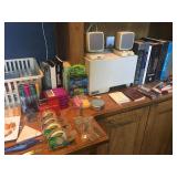 Office accessories and supplies: HP OfficeJet Pro L7650 All-In-One Printer Folders, binders, file dividers, Sharpies, markers, hi-liters, Pens, Pencils, planners, storage trays, sticky notes, paper clips, scotch tape, Air duster cans, Sheaffer pens, paper mate high end pens, Printer paper, Printer color and balck/white Ink for HP models (74 black, 88XL, and more), note pads, notebooks, scissors, key tags, key rings, 3 hole puncher, plastic totes and paper storage, computer monitor, and tons more! Electronics and Accessories: 3-in-1 Digital camera, Canon Powershot ELPH 100HS camera, Canon AF35M II, Sony Tape Recorder, Walkman FM/AM Radio, Lexar 16GB Micro SDHC, Kodak Film rolls, Camera Tripod, Olympus Stylus 150 35mm Camera, Sony CyberShot P200, HP Photosmart 300 series with case and photo paper, Tons of extra power cables and electronic cables for multiple uses, 4GB Micro SD adapter, External Hard Drive, Ipod shuffle, My Passport Ultra, Sony Ericsson Akono Headset, Logitech computer speakers, sandisk card reader, HP pavilion laptop, VHS Player and so many other great things! Kitchen Items: Dining table runners, glass cutting boards, pot holders, hand towels, Pecan Pie and Pumpkin Pie recipe pie dishes, Cast Iron pots and pans, Strainers, Chef Mate waffle maker, Wine glasses, whisky glasses, coffee mugs, tervis cups, plate and bowl sets, Betty Crocker bread and dough maker, Meat Loaf pan set, West bend mixer, black and decker hand mixer, depression glass, vintage glasses, glass cake stand, cooking utensils, kitchen knives, cookie cutters, thermos, casserole dish, blue corning ware, celebrating home stoneware, salt and pepper shakers, cutlery tray, Ice bucket, and the list goes on! Board games such as: Dirty Money, Password, Balderdash, Oodles, Scattergories, Trivial Pursuit, Outburst, think Alike, Beyond Balderdash, Celebrity Taboo, Malarky, 90s Trivial Pursuit, Tradition Oklahoma Football Game, Charade, Bluret, Tribond, Yahtzee, Loaded Questions, Dominoes, Phase 10, Black dot dominoes spinner, playing cards, Skip-bo, Adverteasing, Trivial Pursuit Pop Culture, Scene It, Monopoly, Sooneropoly. Misc: Table art, Wall Art, Decorative paintings and pictures, Tons of decorative Fake Plants, Decorative baskets, Candles, Candle Holders, Lamps, Glass Vases, Wooden Ship display piece, Ship book ends, Light House Statue, Pomeranian Statue, Decorative pots for plants, Butterfly Décor, Trunks of multiple sizes, Jewelry cabinet, jewelry holders, etc. Mens and Womens Clothing: Casual and dress wear, Shoes, Fur coats, Winter Jackets and more! Purses, wallets and hand bags with brands including: Coach, Ralph Lauren, Sonoma and tons of others! |