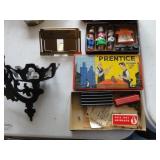 Mortimer Wind up toy w/ box, and other wind up and metal toys, & doll house, Ken & other dolls, Superman Comic & Record Set, AL Barnes Circus flyers & barker sticks, Camel Saddle, brass horse head can & others, Wood Chest & cheese boxes, New Enter. Barrel & Explosive box, Old Panoramic Photo, Charlie Chip Can, Mamie & President Eisenhower Plate, Girl & Brownie Uniforms & badges, Hager, McCoy, & Roseville Planters, Sponslers, Old Export & other Beer Advertising , Davy Crocket Bowles, Smokey & Poppin' Fresh items, Garden tools, tools, shop, drill, saws,tape recorder and record player, Mcoy and roseville pots ,2 silveware sets,2 old motorcycle helmets, jewelry, fishing gear (old) ,oil lamps ,wicker chairs & others, barrel chair,kids old rocking horse, bongo drum, guitar & clarinet, Butter press , duck, cat,lamb& hens on nest, glassware, silverware sets, Many advertising items, Jelly jars & Jelly cabinet& other misc. cabinets, Roy Roger Postcards & other, Vintage clothing& crocodile purse, GT hub caps & others car items, quilt tops & yarn, many box lots. Too many items to numerous to mention.