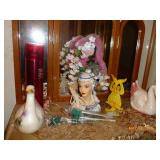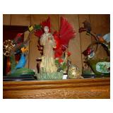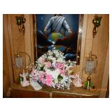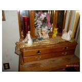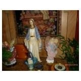 Double door refrigerator, Roper Washer/dryer (looks like new) Gas Stove, Microwave, Curio Cabinet, Single Bed, Dressers, Sofa & chair, Kitchen table, Claw foot piano stool, Bar Stool, Cedar chest, 2 Tier Metal Coffee Table, Decorated Lg. Wood Boxes, Desk, File Cabinets, stands, Drop leaf stands, upholstered bench/chase, Antique dolls (Shirley Temple) and others, Fenton Vase & McCoy Vase, Stained glass lights & décor’, 2 fur neck wraps, Many religious figures, plaques & wall hangings, Remington Rand round key typewriter, Collectible figurines & plates, some # ( too many to list), clocks, quilts, Ku Klux Klan & Election Yr Fact Book by Sunoco, books, Jewelry boxes, Kitchen Items, Dishes, Pots & pans, Décor’ serving bowls, Small Appliances, Linens, Lots of Seasonal and Home Décor’, Lawn Décor’ and swing & chairs. Too many items too numerous to mention. More boxes to be gone through day of sale.