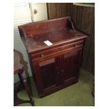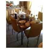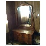 This online auction features Antique oak bed and dresser with mirror; washstand; living room upholstered pieces; chrome and glass end/coffee tables/etagere. German cuckoo clock. Vintage stereo console. China and glass and much more!