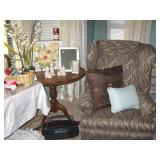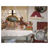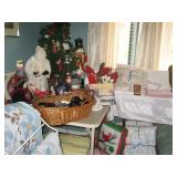 Beautiful leather sofa with matching chair; dinette set; some vintage pieces; complete king bedroom set with like-new mattress; queen set; patio furniture; holiday decor; small refrig; curio cabinet; very nice lamps; flat screen; lift chair and much more. |