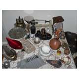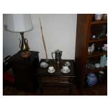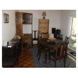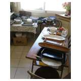 . Upon walking in you find an early 40's barber chair, plants, imported rugs, formal dining set with chairs, corner consoles, lamps, bookcases, collectable pottery, Fenton dishware, collectable tea sets, Asian furniture, Asian collectables, end tables, brass collectables, and treasures from many world travels. We have many books, antique tables and furniture, coffee tables, ships clock, statues', foot stools, paintings, pictures, mirrors, solid oak table, China dishware, silver plate serving ware, oak "ice chest" side tables, computer desk, lp's, crystal glassware, 40's stile office choirs, bamboo chest, leather chair, radios, golf clubs, trundle bed, wing chairs, full kitchen, pots-n-pans, power tools, ladders, file cabinets, headboards, tool box, sewing machine, vintage optometry equipment, office chairs, freezer, mini-fridge, hand cart, patio furniture, and much more. This estate has been updated since the pictures were taken to include any more collectables. Tell your friends, tell your family tell your coworkers!