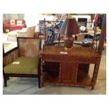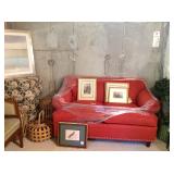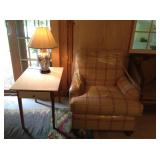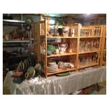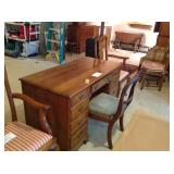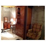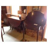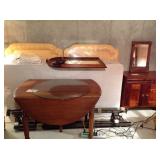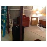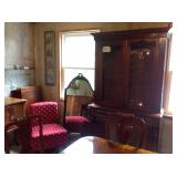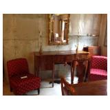 Don't miss this one!!! High end, custom made, like new, upholstered side chair, loveseat and easy chair with foot rest. Vintage parlor sofa, Stickley office desk, Stickley dresser, Stickley dresser top with drawer and mirror, pine dresser with custom glass knobs, Inlaid serpentine cherry server. Queen Anne Inlaid Cherry dining table includes leaf, pads and six upholstered solid cherry chairs. Newly upholstered Queen Anne Side chair. Antique farmhouse cupboard with seeded glass. Hoosier vanity with bamboo trim. Inlaid serpentine cherry server. Vintage cabinet. Solid walnut and mahogany gate leg tables. Museum quality small framed prints. Many end and side tables, lamps, chairs and ornate mirrors. Upholstered twin headboards. Almost new Frigidaire front load washer and dryer. GE Top freezer refrigerator. Brass and black iron fireplace screens andirons and tools. Cut glass candlesticks, bowls dishes, etc.