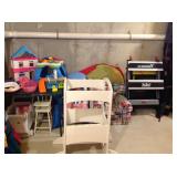Totes, coolers, boat fenders, manual dingy dolly, life jackets, medium size canoe, LL Bean sled, women’s shoes, sandals and designer handbags, baby and toddler Fisher Price toys and equipment. High-end Christmas ornaments, Lynn Hanley Collection Santas, ribbon and décor.
