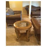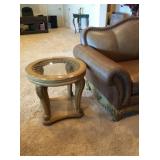 Dining Set: Glass Top Pedestal Table and Four Chairs