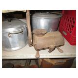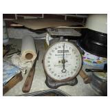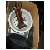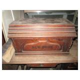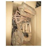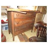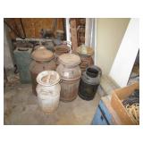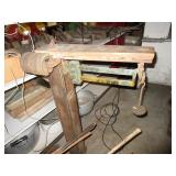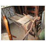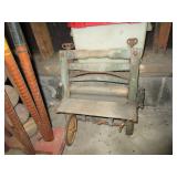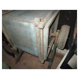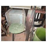 Antiques/Primitives: Blue Sunoco Wayne mod. 80 gas pump; 1920’s Hotpoint stove; wooden barrels; harness maker’s bench; old wooden wheels; butter churn; milk cans; wood planes & other old tools; fodder cutter; Greenwald Industries candy machine from Sears; wood advertising crates; platform scales; old sleds; perfection heaters; washboards; nail kegs; lg. iron pulley; crocks; misc. farm & country primitives. Furniture: Lincoln & other rockers; caned & plank bottom chairs; old Hoosier style cupboard; Bentwood lamp table; blanket chest; old desk; (2) butcher block desks; ice cream parlor chairs; gossip bench; floor radio; dining table; tall wooden case clock; weathervanes; pitcher pump lamp; washstand w/mirror; maple hutch; smoker stand; easel; tilt top table; C&B organ stool; fern stand; oak dresser; lg. wooden theater bench;