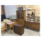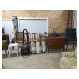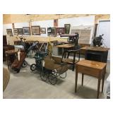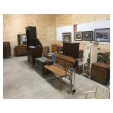 Furniture: Walnut Dining Room Table and Chairs, Dressers, Bookshelves, Parlor Tables, Lamps, End Tables, Night Stands, 30 in Flat Screen TV, Pair of Oak Children’s Chairs, Trunk, Metal Cabinet, Oak Rolltop Desk with Key, Singer Treadle Sewing Machine, Primitive Tables, Leather Recliner, Bunk Beds, Coat Rack, Victor Victrola with Key, Walnut Spinning Wheel, 4ft Oak Bench, Loveseat.