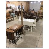 Household: Flatware, Like New Decorative Pieces and Kitchen Items, Sewing Machine, Card Table/Chairs.