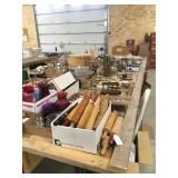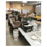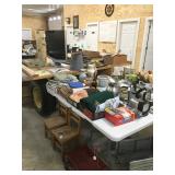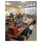 Tools: Circular Saws, Jig Saws, Drills, 10” Compound Miter Saw, Shop Vac, 4ft Levels, T Square, Several Flats of Quality Hand Tools and Mechanic Tools, Floor Jack, Battery Charger, Wood Clamps, Bench Top Drill Press, 6ft Fiberglass Step Ladder, 14ft Fiberglass Extension Ladder, 7 Full Sections of Scaffolding with Leveler, Craftsman Router, Craftsman 10in Radial Arm Saw, Rockwell Table Saw, Craftsman Jointer, Hand Cart.