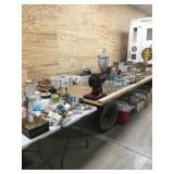 Antiques/Collectibles: Primitive Farm Tools, Enamelware, Art Pottery, Art Glass, Blue Canning Jars, Vintage Kitchen Utensils, Oil Lamps, Vintage Pyrex Bowls, Stoneware Crocks and Bowls, Old Bottles, Wood Boxes and Crates, Campbell’s Coffee Can, Twine Dispenser, Winchester Rifle Clock, Vintage Toys, Cast Iron Desk Lamp, Lard Press, Local Advertising Pens, Pencils and Hats, 45 RPM Records, Cheese Boxes, Washboards, Cast Iron Well Pump.