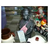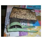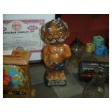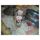 Two Antique Armoires with Burl Wood, Collectable Cars, Police Beetle, Many Antique and Vintage Dolls, Boy Iron Figure from 1957, McCoy Pottery, Lot of Belt Buckles, Face Vases, Vintage Toys, Beam Decanter, Coca Cola Truck, Stock Certificate, Collection of Vintage and Antique Chairs, Electric Clock, Vintage Japan Porcelain, 1931 Elks Lodge Book, New Vintage Electric Shaver, Glassware Including Carnival Glass, Coin Holders, Rice, Vintage Boy Scout Pack, Wood Plates, Wood Signs, Large “Leather Shop” Painted Glass, Large Framed Tapestry, Wood Boxes and Signs, Framed Flower Sack, Coffee Burlap Bag, Nice Framed Wood Shelf, Needle Point, Several Grey Porcelain Steel Ware, Old Pin and Ink Stand, Continuous Number Stamp, Humidor, Vintage Frontiersman Metal Detector, Vintage and Complete Airliner and Aviation Kits and Toys, Old Styptic Pencils, Mini tea Set, Vintage Kids Card Games, Collection of Buttons, Old Tape Machine, Galvanized Kerosene Can, Several Bird Houses, Large Hand Made Wood Clamps, Hat Rack, Old Ice cream Maker, Scythe / Sickle thing, Old Wood Saws, Coat Rack, Figurines, Insulators, Perfume Bottles, Pottery, Drink Shakers, Complete Fencing Kit, Old Door Knobs, Old Patches, Soup Tureen, Framed Coffee Sack, Button and lace Collection, Brass Coal Bucket, Weird Cookie Jar, Vending Machine, Huge Lot of Player Piano Music Rolls, 1800’s Baby Cradle, Vintage Quilts, Drop Leaf Table, Wood Shelves And More With our 4 for a Dollar/ Free Tables.