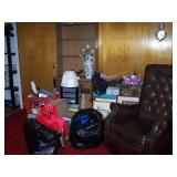 Contents to include:Leather sectional sofa, white upholstered sectional sofa, other leather sofa and chair, lots of MCM items, lamps, wall decor, clothing, Asian theme decor,..... |