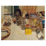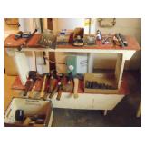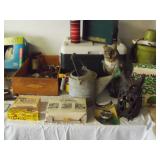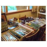 Sofa, occasional chairs, mahogany leather top end tables & coffee table, cherry candle table, lamps, 12 pc mahogany dining room suite, signed lithographs, original oil paintings, Meadowcraft iron patio set - sofa, 2 chairs, 2 tables & ottoman, maple table w/4 chairs, GE refrigerator, Frigidaire electric range, small kitchen appliances, Pyrex, usual kitchen, many smalls, one room of sewing items, fabric, Husqvarna Viking Designer II Sewing Machine w/ quilter program, Touch & Sew Singer Sewing Machine 1464A, related sewing items, Singer Ribber Machine, Singer Knitting Machine, Singer Knitting Machine stand, yarn, quilter hoop, Maple: double bed, chest of drawers, chest w/ mirror, 2 night stands, bookcase, Sterling House Maple: twin beds equipped, nightstand, double dresser w/ mirror, chest of drawers, Jamestown Sterling triple dresser & mirror, maple side chairs, 2 kneehole desks, Smith- Corona electric typewriter, linens, bedding, Hoover vac, shop vac, lawn furniture, army foot lockers, gas grill, Bolens MC2500 wood chipper, Power-Rite gas generator, John Deere LT155 lawn tractor w/grass & leaf pickup, metal filing cabinets, over stove GE microwave w/exhaust fan, heater, Coleman stove & lantern, jacks, auto related items, ladders, GM rims, yard tools, airless sprayer, Cut-n- Weld, chain saws, hedge clippers, edger, weed wackers, oak one drawer table, hand tools, power tools, Kennedy rocker, futon, Danish modern chairs, Christmas, toys, Lazyboy recliner, Lifestyler 8.0 treadmill, NordicTrack, canning supplies, collectibles. Special Items: 1998 Honda Accord w/58,691 original miles, South Bend Lathe 3 1/2 ft with attachments. |