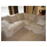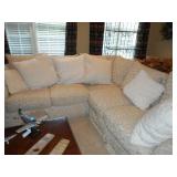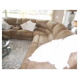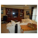 Family room furniture including large leather sectional couch in excellent condition