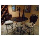 Wine room furniture including bistro table and chairs, baker's rack